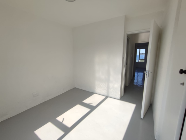 This unit has a lovely fully-fitted kitchen and open lounge area leading out to a balcony overlooking the ocean. The two bedrooms have ample cupboard space.