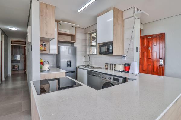 Consisting of a well-fitted kitchen with Caesar stone counters and a large breakfast nook, equipped with quality appliances.