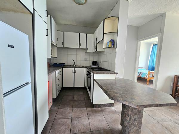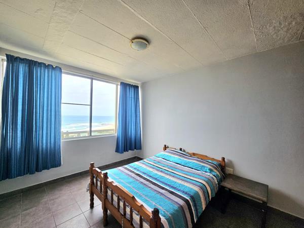 Both bedrooms are generously sized and feature built-in cupboards, with panoramic ocean views adding a serene touch. The apartment includes two bathrooms one with a shower and the other with a bathtub offering convenience for families or guests.