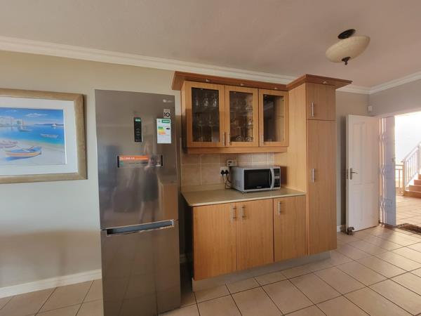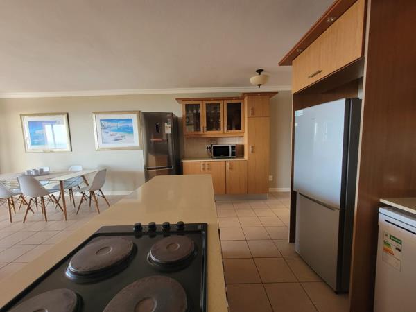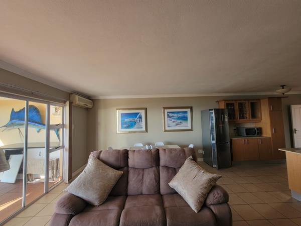 This inviting 3-bedroom, 2-bathroom apartment offers an exceptional coastal living experience in Illovo Beach. Designed for comfort and convenience, the residence features an open-plan layout seamlessly connecting the living, dining, and kitchen areas. The kitchen is equipped with wooden cabinetry and modern stainless steel appliances, including an LG refrigerator, complemented by durable tiled flooring throughout the home. A dedicated dining area and a comfortable lounge provide ample space for relaxation and entertaining.