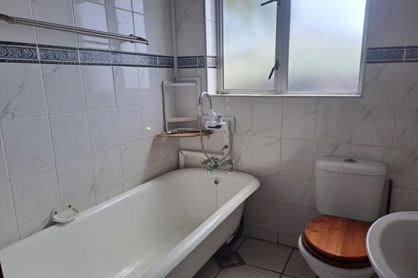 The bathroom comprises a bathtub, toilet, and basin.