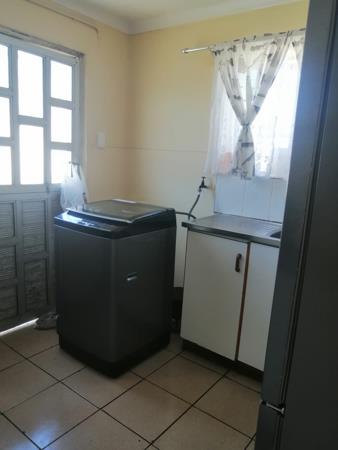 This modest but well-maintained 2-bedroom house comes tiled throughout with open-plan lounge and kitchen. The spacious backyard yard is fully enclosed with a vibracrete wall. Burglar bars and security gates. Prepaid water and electricity.