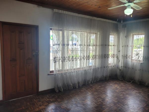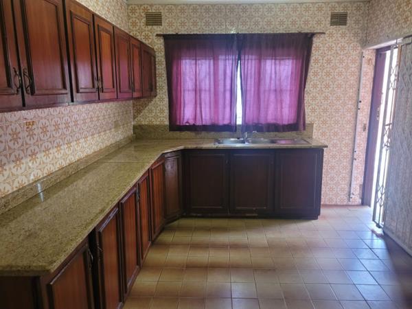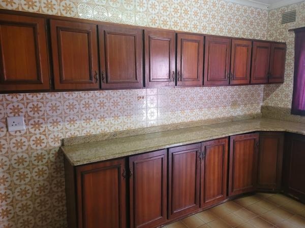 This Arena Park rental offers three bedrooms and two bathrooms, including one en suite. The interior features classic parquet wood flooring and warm wood-paneled ceilings in the living areas, providing a distinct character. The kitchen is equipped with ample dark wood cabinetry, durable countertops, and a double basin sink, ideal for daily living. There is also a dedicated lounge and dining room. This property is well-suited for families seeking a functional home. It includes two dedicated parking spaces, adding convenience for residents. Security is enhanced with burglar bars on windows and security gates, ensuring peace of mind. Located in Arena Park, Chatsworth, South Africa, this home offers suburban living.