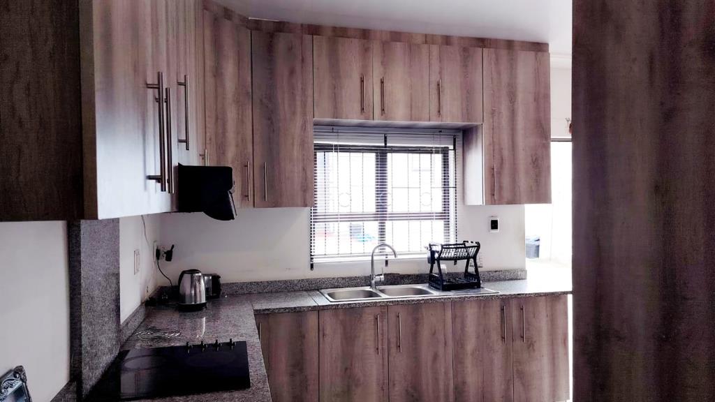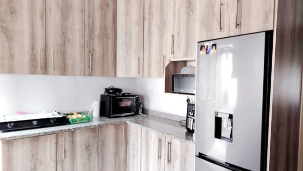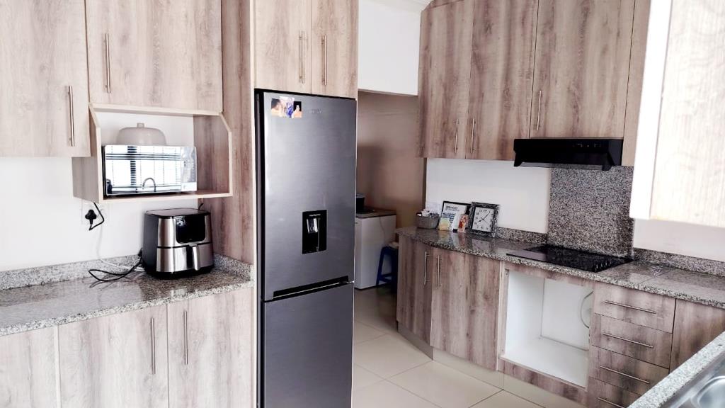 The home features a fully fitted kitchen and an open-plan lounge and dining area, creating a warm and welcoming space. The lounge opens onto a balcony with beautiful views of Bayview, perfect for relaxing or enjoying a braai.