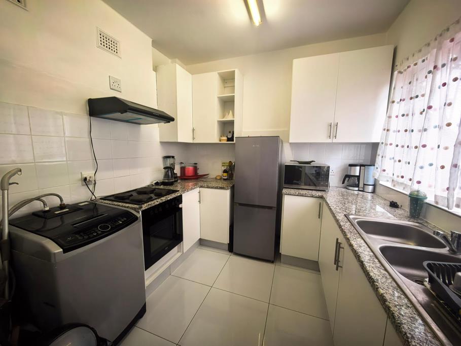 - Modern kitchen - Spacious, fitted cupboards with granite counter top, HOB, UCO, extractor fan, titled floor and wall splash-black, plus a built-in washing machine fitting.