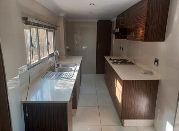THIS HOME HAS 4 BEDROOMS FULLY FITTED WITH MODERN FINISHES FULLY CARPETED IN BEDROOMS WITH AIRCON IN MAIN BEDROOM ,FABULOUS KITCHEN WITH SCULLERY AREA.THE LOUNGE IS FITTED WITH LAMINATED WOODEN FLOORING IN DINING AND TV ROOM.IT HAS 2X FULL BATHROOMS WITH 1X GUEST TOILET,STORAGE ROOMS, DOUBLE GARAGE WITH OPEN PARKING FOR 3 CARS,THERE IS A PREPAID METER ASWELL WATER IS SEPERATE IT ALSO HAS A POOL AND BRAAI AREA, SUITABLE FOR A LARGE FAMILY ,WELL SECURED HOME IN PRIME LOCATION OF ESSENWOOD.IMMEDIATE OCCUPATION.