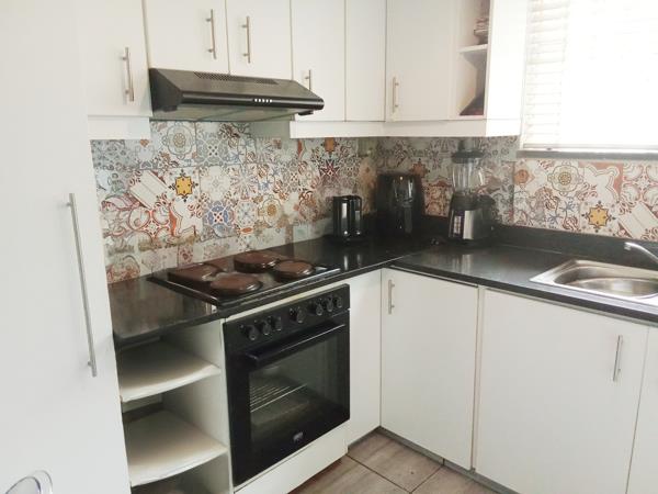 Set within a neat, well-maintained block featuring manicured gardens, a beautiful park-like communal area with a jungle gym and good security with automated gate access, the property provides a peaceful lifestyle in a good neighbourhood. Inside, the apartment impresses with its generous proportions and fully tiled interior. The modern fitted kitchen boasts granite countertops and ample cabinetry. A separate dining room flows seamlessly into an expansive lounge, offering plenty of room for comfortable living and entertaining. The main bedroom is exceptionally spacious and fitted with built-in cupboards, leading into a modern en-suite bathroom with a shower and plumbing for a washing machine. The additional half-bedroom is ideal as a home office, guest room or small bedroom, depending on your needs.