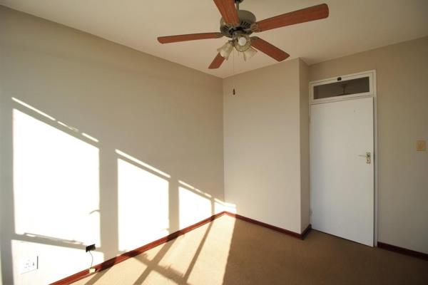 The kitchen is fully fitted and has granite counter tops with an under counter oven and hob. Both bedrooms have ample built in cupboards and are carpeted. There is also an additional laundry cupboard in the passage. The first bathroom has a tub with hand shower, toilet and basin. Connections for a washing machine are neatly housed in a cupboard with the geyser. The en suite bathroom has a shower, toilet and basin.