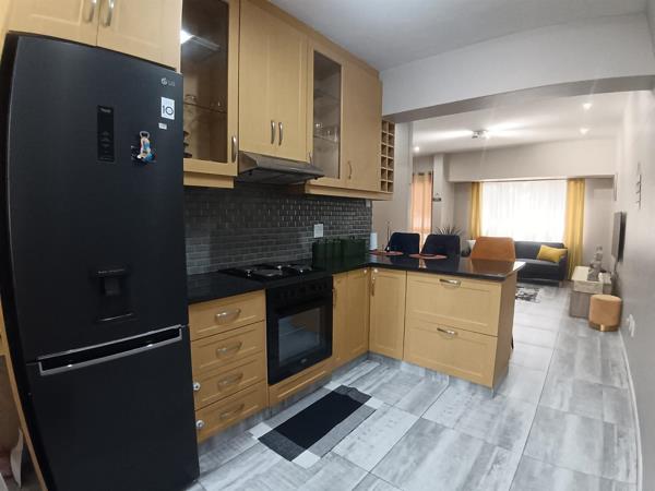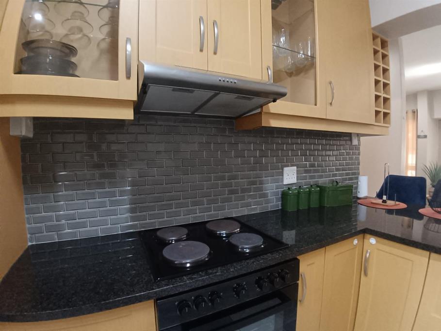 Modern granite kitchen, open plan living room. Washing machine and dishwasher connections available. The upgraded bathroom is outfitted with modern fixtures and shower. Two great sized bedrooms, with ample built-in cupboards. Tiled floors throughout.