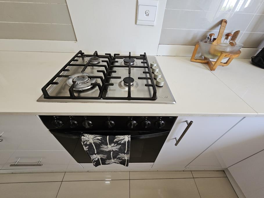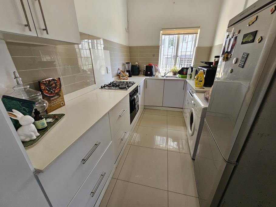 This amazing spacious 118sqm ground floor apartment offers two huge bedrooms, with built in cupboards. An enclosed porch, which can be used as a work from home office. Fitted kitchen with loads of cupboard space, under counter oven, gas cooker hob, and extractor, also plumbed for a washing machine. Family bathroom with a walk-in shower, vanity and toilet. A dining room off the kitchen, separate living area and a second sun lounge. Fully tiled throughout with wooden floors in the living area. Communal braai area for those summer days outdoors in addition to a lock up garage, a second off street parking.