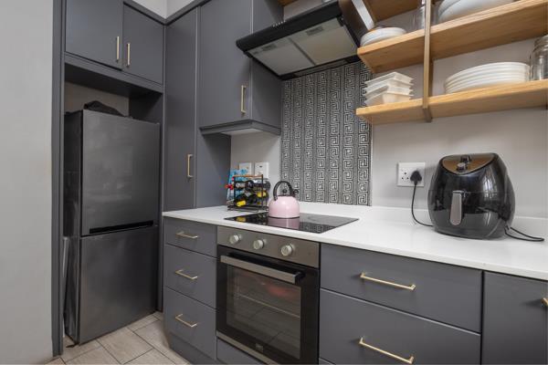 The kitchen and bathroom and separate toilet have been very stylishly renovated. The kitchen has a built-in oven and hob, there is ample storage space in the perfectly designed cabinetry.