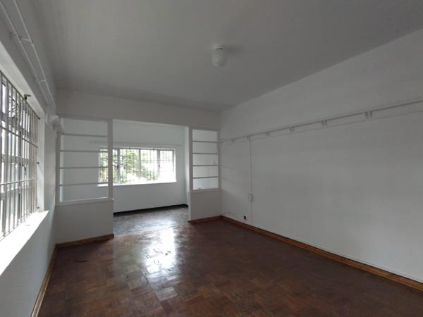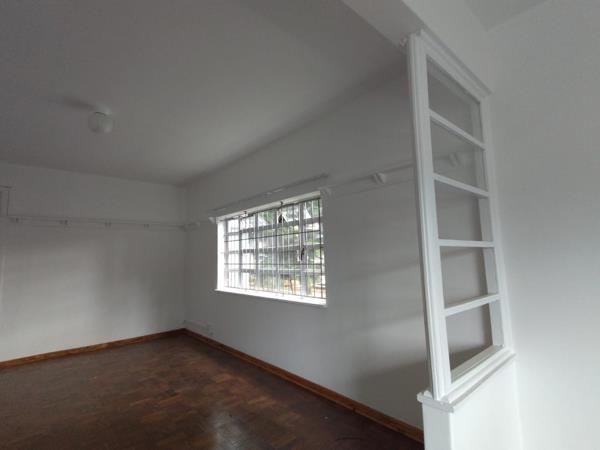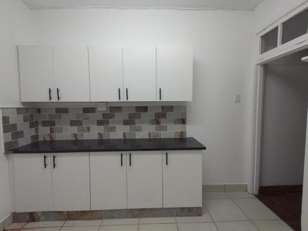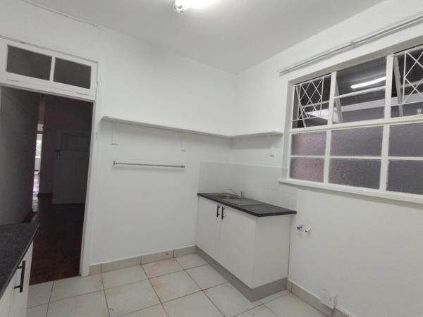 The unit offers an open-plan dining and lounge area, leading into a neat kitchen no stove provided.