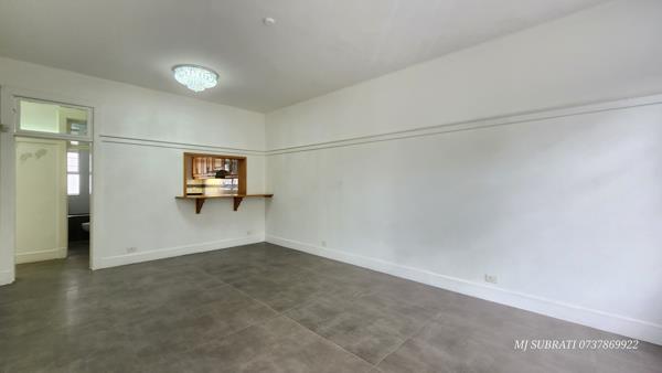 The unit features a spacious lounge and dining area, along with a modern kitchen fitted with built-in cupboards, an oven, stove, and connections for both a washing machine and dishwasher. It offers 2.5 bedrooms and a fully renovated bathroom.
