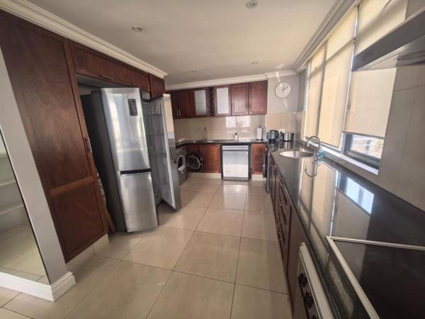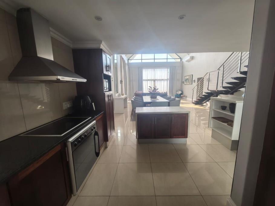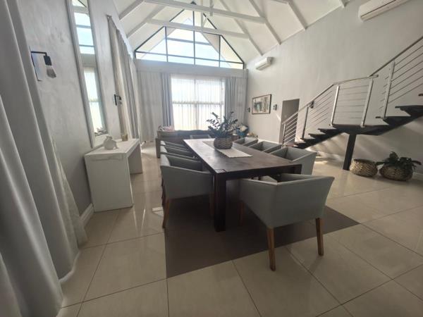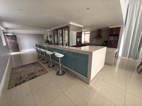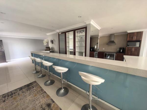 The home features a large open-plan dining area, 2 lounges, and a built-in bar- perfect for entertaining. Glass doors open onto a spacious balcony showcasing breathtaking, uninterrupted sea views, creating the ideal setting for relaxation or hosting guests.