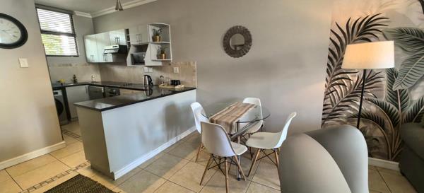 The open plan layout seamlessly connects the fully equipped kitchen to the lounge and dining area, creating a warm and inviting space ideal for entertaining or relaxing.