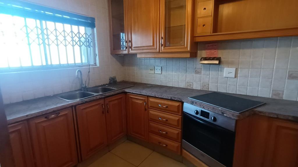 - Modern kitchen with a stove, double sink, plumbed for a dishwasher and washing machine.