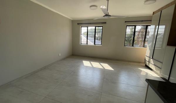 The bathroom is fully tiled and comes with a shower. Built-in cupboards are included for convenient storage.