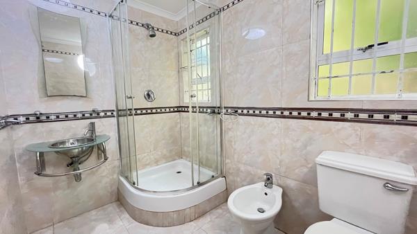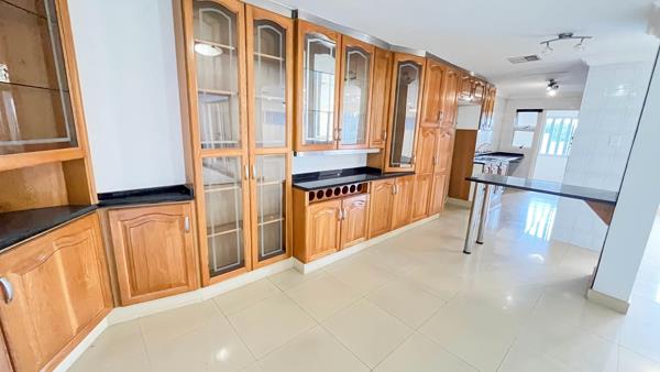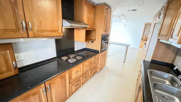 The double garage and front door lead upstairs into a large spacious lounge, with sliding doors opening onto a balcony that has an open panoramic view extending over the trees and rooftops all the way to Moses Mabhida stadium. The smart galley kitchen includes a small pantry room, with an open plan dining area as well as a separate large formal dining room. The third bedroom could well be better used as an office, and the other two bedrooms are well sized, with a corner tub and smartly finished upmarket bathroom facilities. The main bedroom leads out into a small green back yard private space. An elegant and mature family home. The property also has living in domestic quarters alongside the double garage. Call or message the agent to arrange a viewing.