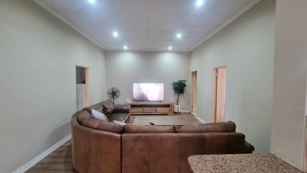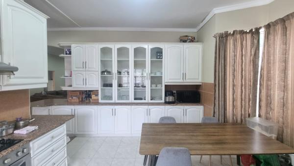 The home features a modern kitchen fitted with built-in cupboards, an oven, stove and hob, along with a generous lounge and dining area. All three bedrooms include built-in cupboards, and the property has one well-maintained bathroom.