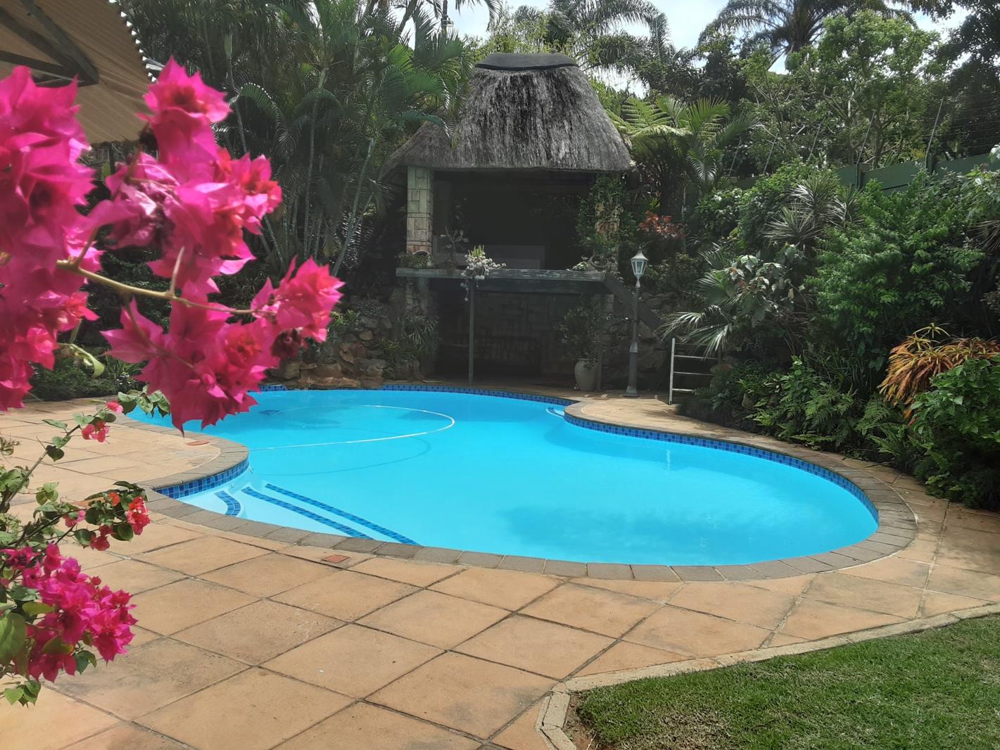 Braai area, gazebo with outdoor furniture and swimming pool accessible.