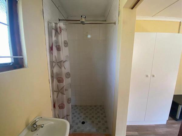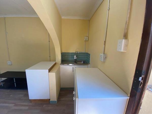 Compact yet fully functional, small wash up basin with counter space & space for a small fridge.