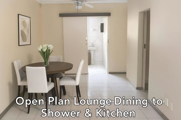 Description: The house is on a panhandle site, with a large, serviced garden including a garden service, inclusive in the rent, divided into two 2 two-bedroom units the current neighbours are occupied by quiet and respectable families. This RHS unit is slightly larger. Each unit has two 2 bedrooms with built-in wardrobes, bathroom corner shower, open-plan kitchen, no appliances are supplied, open-plan lounge-dining room.
