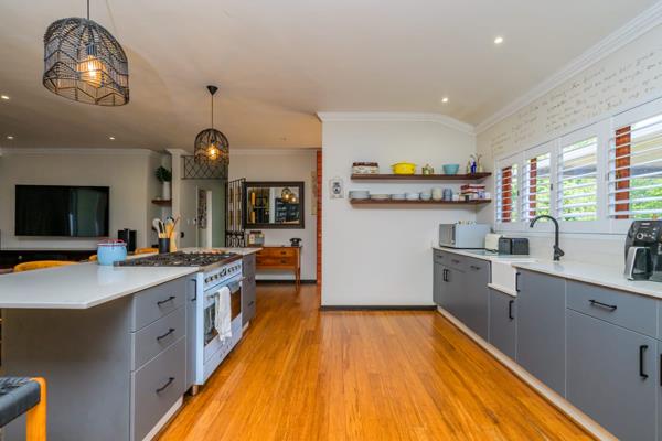 Make many happy memories in this beautiful family home designed by our family. As you enter the house an open space awaits with a view from the pool, lapa as well as the built in braai in our bar area. The braai room has a big bar counter that can be used as dining area. Outside there is another bar counter as well as a lapa and boma. The pool overlooks a green lawn and stunning surroundings. Safe and quiet neighbourhood. Definitely the happiest of homes.