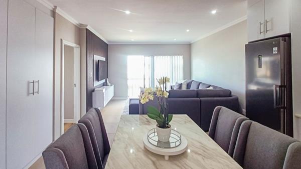 The open plan kitchen has an electric stove and under-counter oven as well as plumbing for your washing machine. The dining and lounge have a seamless open plan flow.The unit boasts 2 spacious bedrooms with 2 modern bathrooms, the main being an en-suite with bath, basin and toilet and the family bathroom has a shower, basin and toilet.