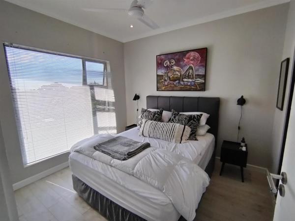 This modern and contemporary apartment offers a secure and comfortable living environment, providing residents with complete peace of mind. It features one bedroom with built-in cupboards, window blinds, and a ceiling fan. The bathroom is elegantly designed with a shower, toilet, and basin, while tiled floors and aluminium windows allow natural light to fill the space. The fitted kitchen is equipped with a built-in electric oven and stovetop, combining style and practicality for modern living.