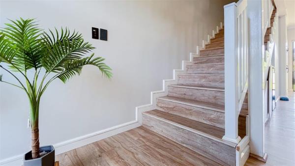 Upstairs, three well-appointed bedrooms are set apart from the living areas, ensuring privacy and comfort. Each bedroom offers ample built-in cupboard space to meet all your storage needs.