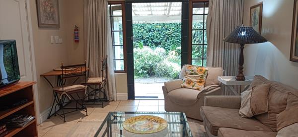 The lounge is spacious and double doors open onto a covered verandah looking over an established garden, a beauty to behold with the splashes of colour. A separate full bathroom compliments this unit. There is also a separate kitchenette which also has views overlooking the garden.