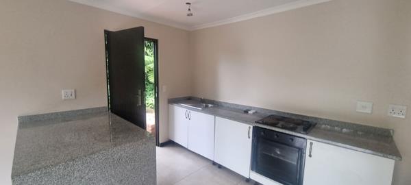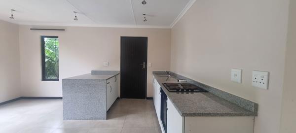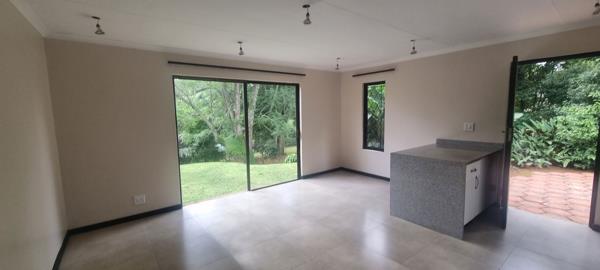 This unit offers an open-plan loungekitchen, a private patio and garden with garden service included, and two open parking bays.