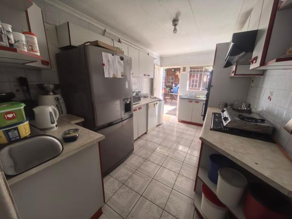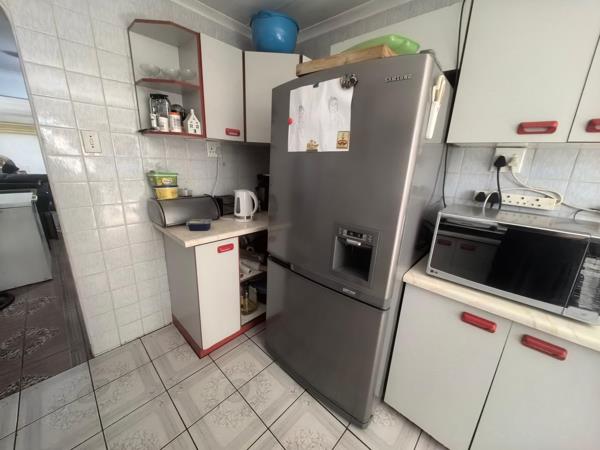 The open-plan lounge and dining area provide ample space for both relaxation and entertaining. The fitted kitchen comes with built-in cupboards, plenty of counter space, and room for all major appliances.