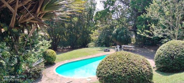 The property features 4 well-sized bedrooms, 2 bathrooms, a comfortable lounge, dining area, kitchen with scullery, and a veranda that opens out to a sparkling pool surrounded by a peaceful, leafy garden perfect for family time or entertaining.