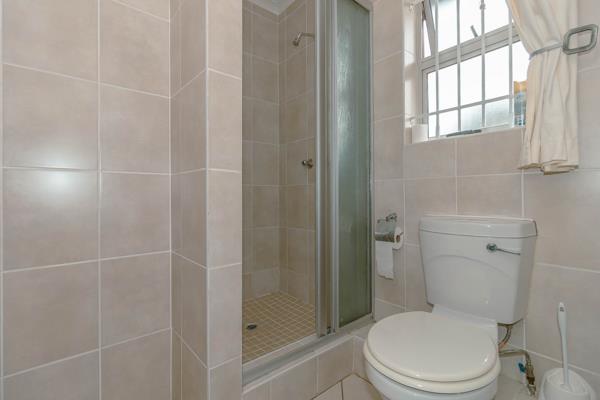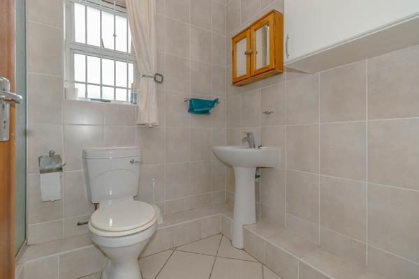The bathroom has as a shower, basin and toilet and fitting for a washing machine.