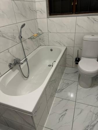The unit is completely tiled and offers three spacious bedrooms, The rooms are fully fitted with built in cupboards and has high beam windows. The main bedrooms has an ensuite with and shower and there is a second bath and toilet as well.