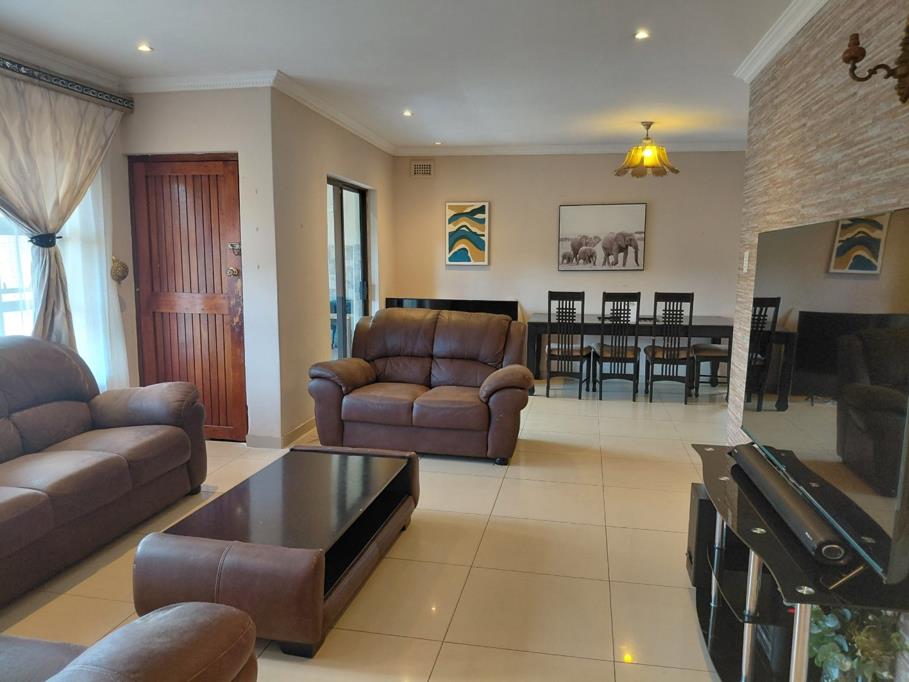 This stunning home offers a fully fitted kitchen with built in stove and oven, open plan lounge, dining area with doors opening onto a balcony with peaceful views of lush surrounding trees and bird life There are 3 spacious bedroom with built in cupboards, en-suite , guest bathroom, single garage, with carport , swimming pool and garden.