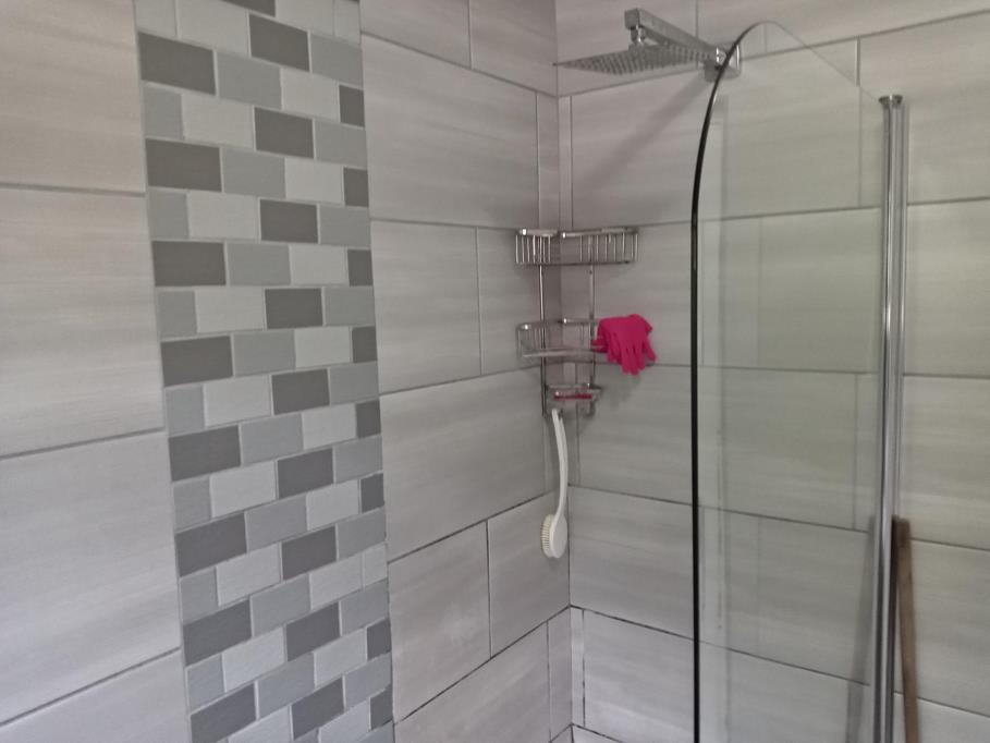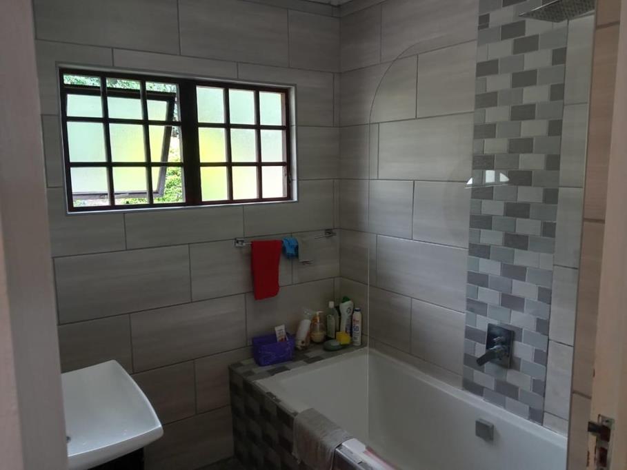 The stylish bathroom includes both a bathtub and a shower. The home is also fitted with a prepaid electricity meter, giving you full control over your monthly usage.