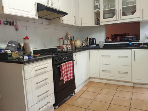 The home offers four well-sized bedrooms and two bathrooms, providing ample accommodation for family living. Security features include burglar bars, an electric gate, and an intercom system, ensuring peace of mind.