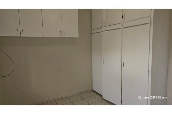 Spacious 3 Bedroom House situated in quiet area near all amenities. Features parking for approximately 8 cars, L-shaped Living Room, Tiled & Fitted Kitchen with 4 Plate Stove Hob, Bathroom with Toilet plus Second Toilet, Plenty Built-in Cupboards, Large Covered Veranda, ideal for entertaining. Automated Access Gate. On-site Generator in case of Loadshedding. Rental includes water consumption. Electricity consumption Pre-paid. Occupation 1 August 2025.