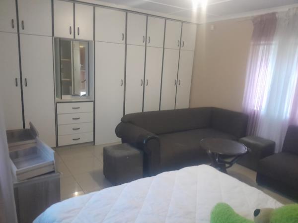 Huge bedroom and lounge combined with loads of built-in cupboards and an aircon