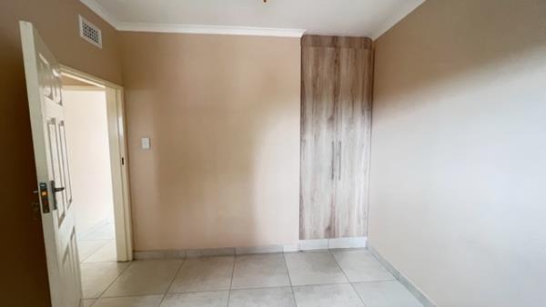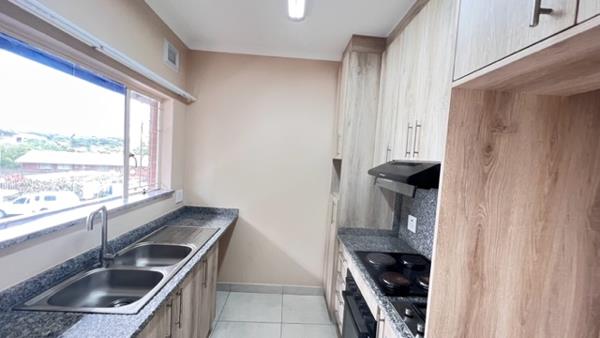A two-bedroom flat in central Malvern, Queensburgh, close to shopping centers, Medic Ross, and pharmacies. Features include an open-plan lounge and dining area, a fitted kitchen with both electric and gas cooking, fully tiled floors, and fitted bedrooms. Refuse is billed monthly, water is currently included but subject to a prepaid meter installation, and electricity is billed separately.