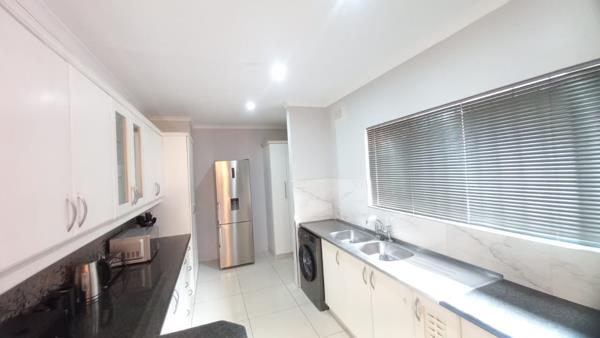 Modern kitchen with ample storage, quality appliances, and a breakfast bar