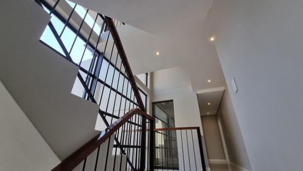 Indulge in three levels of pure bliss with the opportunity to be the inaugural occupant of this magnificent residence perched majestically above Izinga, commanding breathtaking vistas. This home spans three stories, gracefully nestled within a secure complex within an access-controlled estate, ensuring utmost safety.