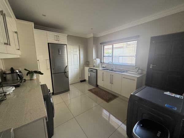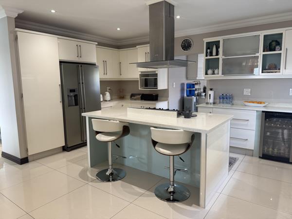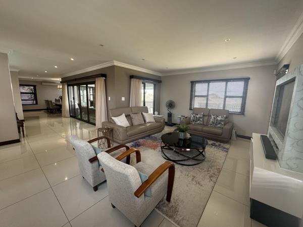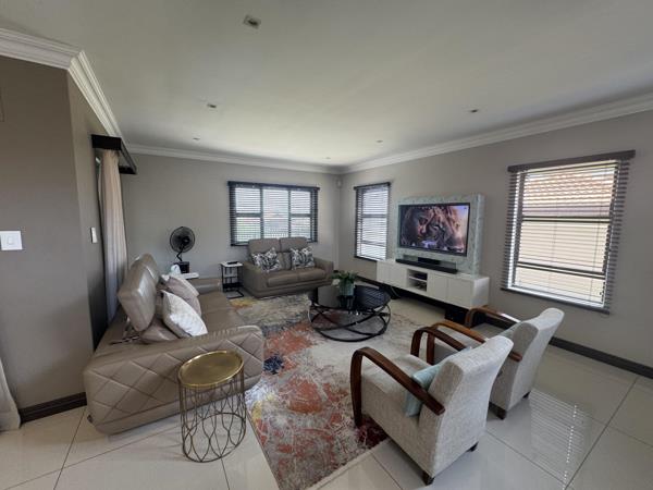 This immaculate and beautifully maintained family home offers exceptional space, light, and comfort throughout. Designed for effortless living and entertaining, the formal lounge and dining room both open onto a private covered patio overlooking a landscaped garden and a sparkling pool set on a wooden deck. A covered, fitted braai area completes the ideal entertainment space.