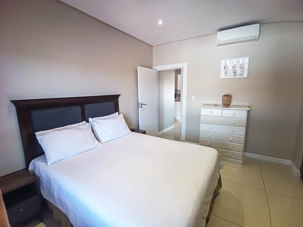 Step into this stylish first floor apartment and discover a beautifully designed Caesarstone open plan kitchen, complete with abundant cupboard space, a gas stove, and an electric oven. The air-conditioned living area flows seamlessly onto a bright, airy balcony with serene views of the rolling residential hills of Izinga. The modern bathroom and spacious bedrooms complete this elegant home. Additional features include WiFi and a convenient storeroom. A perfect blend of comfort, style and secure estate living.