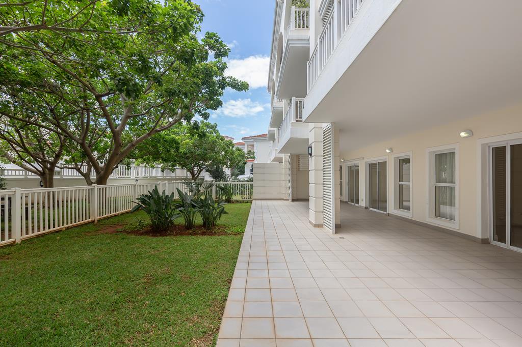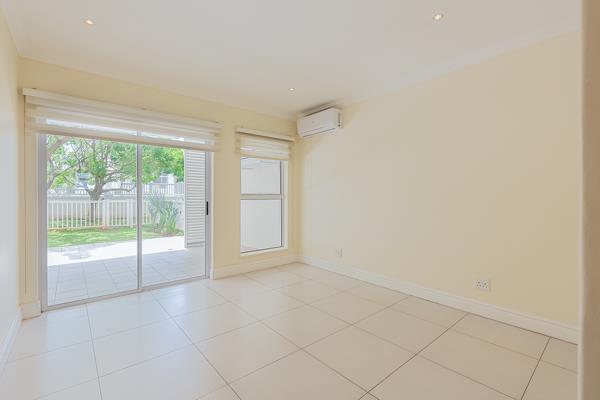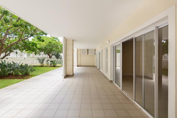 This immaculate ground floor unit offers open plan living spaces with stack back doors that open out to a small neat garden overlooking the communal pool. The large open plan kitchen includes a modern granite kitchen equipped with ample cupboard and cabinet space, connections for washing machine and dish washer and centre island with electric stove and oven. The unit also offers a guest loo for convenience.