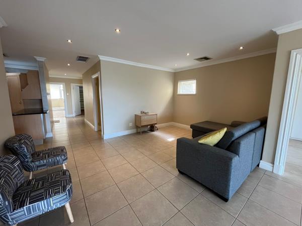 Each of the three bedrooms features its own en-suite bathroom and ample cupboard space, with room to accommodate king-size beds. Two of the bedrooms open directly onto the enclosed balcony, which is finished with glass sliding and stacking doors, creating an inviting indoor-outdoor living experience.