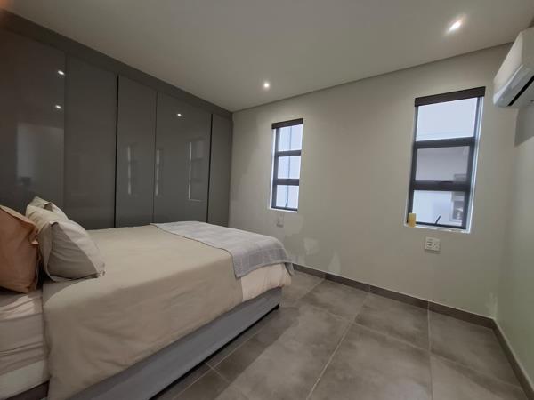 This stunning, modern townhouse in a sought after gated estate on La Lucia Ridge is available for rent. The property features 3 bedrooms, including one en-suite downstairs, a large double garage with storage and laundry facilities, and a spacious open-plan lounge, dining, and kitchen area with breathtaking sea views. The master bedroom boasts a walk-in dressing room and en-suite with large shower and ample vanity space.