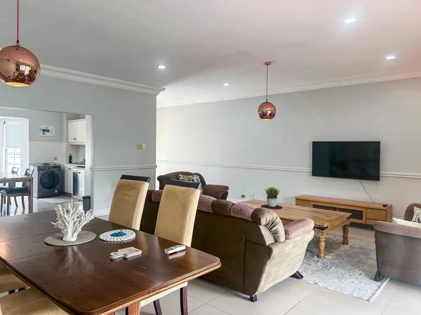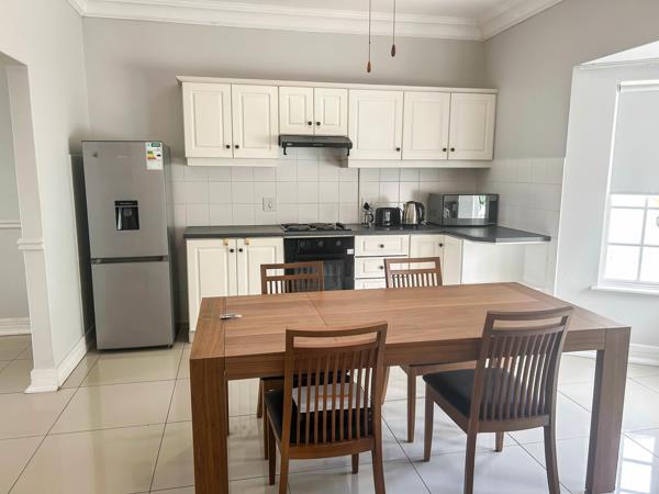 Beautifully furnished first floor apartment in an exclusive four unit complex within a secure golf estate. The unit offers two bedrooms, two bathrooms, a stylish lounge with TV and a fully equipped kitchen with a washing machine, dryer, microwave and fridge. It includes a small study area, ample cupboard space and a private balcony overlooking the garden.